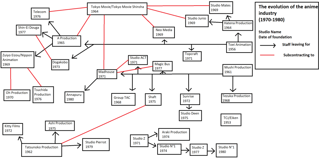 The goal will be to study the industry in “anime industry” : while I will offer some commentary on some of the works cited, I will focus on the history of production and careers. This way, I aim to see how anime became anime, that is, how the style and production process we know today have evolved and taken a somewhat definitive form.