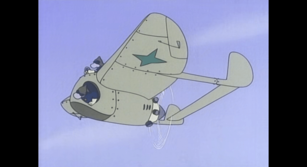 - and among those, the biggest source of conflict must’ve been the climax of episode 21, which is no less than a war scene involving planes and tanks… animated and very probably designed by Hayao Miyazaki, who had been called by Otsuka and couldn’t refrain his love for vehicles