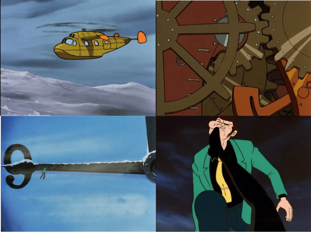 While this makes sense in purely technical terms, it makes no doubt that Miyazaki’s visual imagination took over Takahata’s, who could not draw. The most eloquent proof of that is episode 10, the first real episode of the duo, which is full of miyazakisms. The scenario, involving a counterfeit money maker, is reminiscent of Castle of Cagliostro even in some scenes, such as Lupin getting stranded on a giant clock. The final scene, a fistfight in the snow, is very similar to Porco Rosso’s own fistfight. There are also all the car and plane chases you could wish for, with Miyazaki’s very recognizable mechanical designs contrasting against Otsuka’s very realistic ones.