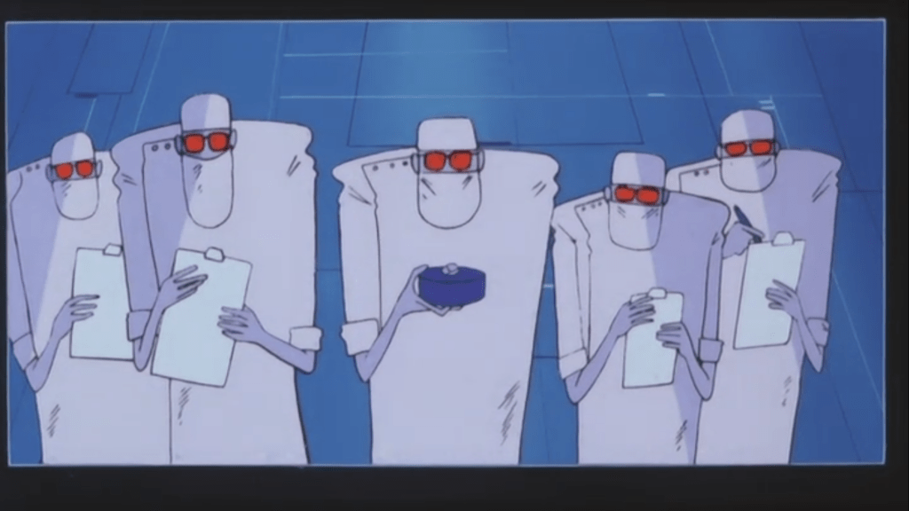 At the same time, like most of the staff of the movie, Aoki worked on the TV series – though most of his work is on the late, post-Mamo part of the show. He did some significant contributions, storyboarding 16 episodes and animating on 5 among which one solo, #30 (although Benjamin Ettinger thinks he only did the first part), and some probably uncredited work. But his real masterpiece was his solo OP, the fourth and last of the show. It’s full of abstract shapes and effortlessly creates movement and expression through shading – I can’t believe Aoki’s design sense and seamless transitions weren’t an influence for Koji Morimoto’s famous Project Eden opening, which is another way of saying that, as in many other things, Aoki was 10 years ahead of his time.