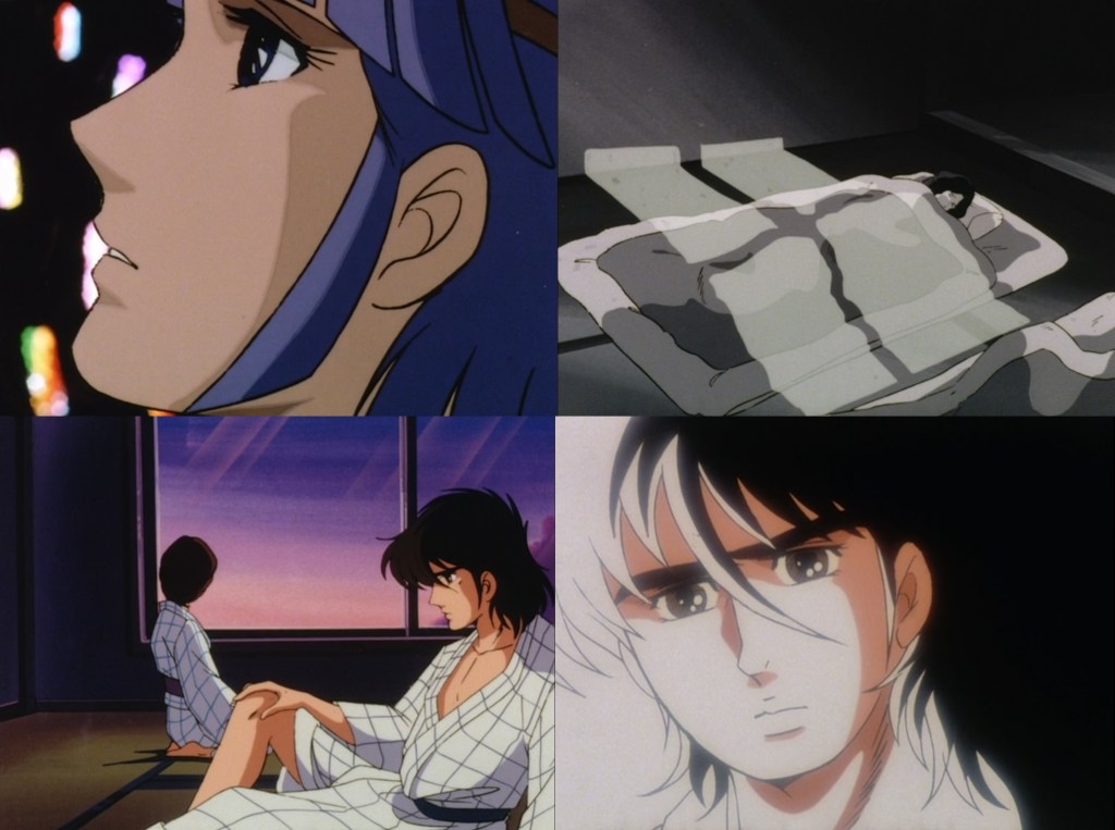 What’s so striking about Sanshirô are two things: one, that it’s Kanada-style animation from start to finish, just like Tetsujin 28 was. The other is that it wasn’t Yamashita-style animation, but remained very close to Kanada himself, at least on Ochi’s episodes. The fights he animated kept their complex layouts and choreographies, as well as the trademark kicks. But his most unique performance was probably episode 25, on which he did joint animation direction with Mutsumi Inomata. Rather than an innovative approach that would use newer and bolder techniques (as Shinsaku Kôzuma did on the same show), it was a look backwards, much closer to Kanada’s 70s gekiga style than what he and Yamashita were doing in the early 80s.