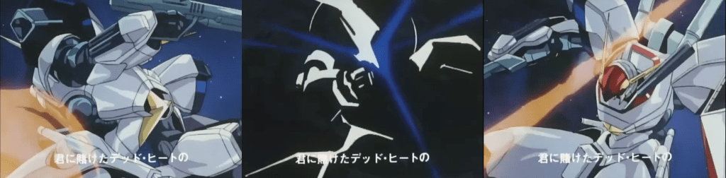 After that, Obari contributed to the openings of most entries in the Brave series: Fighbird in 1991 (for which he was also chief mechanical animation director), Dagarn in 1992 and finally Might Gaine in 1993. Just like for Kanada in the early 80’s, openings were the perfect stage for Obari to shine, as he had more time and less constraints to put out the work he wanted than in normal TV or even OVA production. Over his works in the 90’s, he often collaborated with his wife Atsuko Ishida, following what seems to be a gendered division of labor: Ishida handled most character animation, especially female characters, while Obari did all shots involving a mecha or a vehicle of any kind, and often male characters as well.