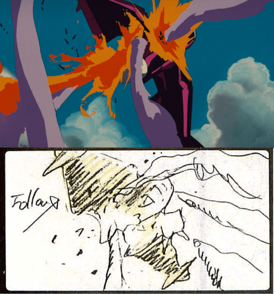 To replace them, Komatsubara made full use of his contacts: most of the animators on the movie were from his studio, Oh Production. As for Kanada, he brought with him the two other aces of Studio N°1: his teacher Takuo Noda, and his first student, Osamu Nabeshima. Their presence was central, as Kanada-style effects would be recurrent throughout the entire movie.