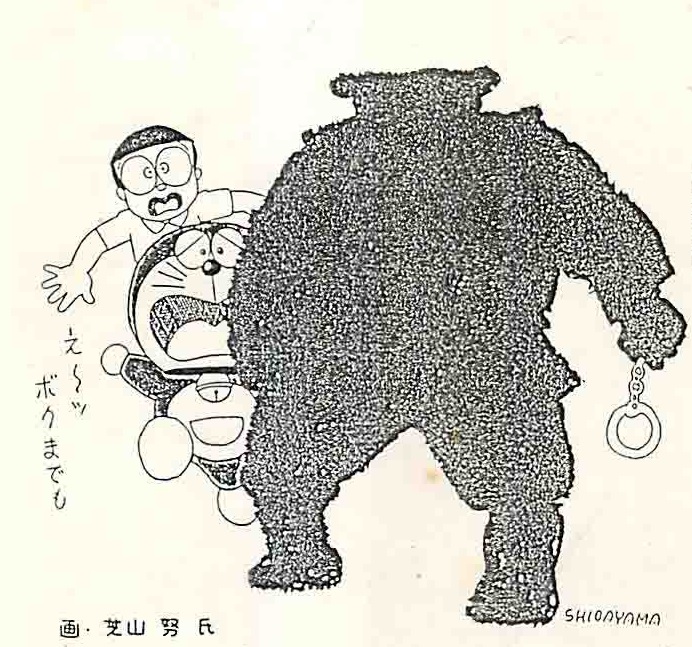 Tsutomu Shibayama’s illustration for the 1985 appeal, in which even Doraemon is shown to be a victim of the State Secrets Act