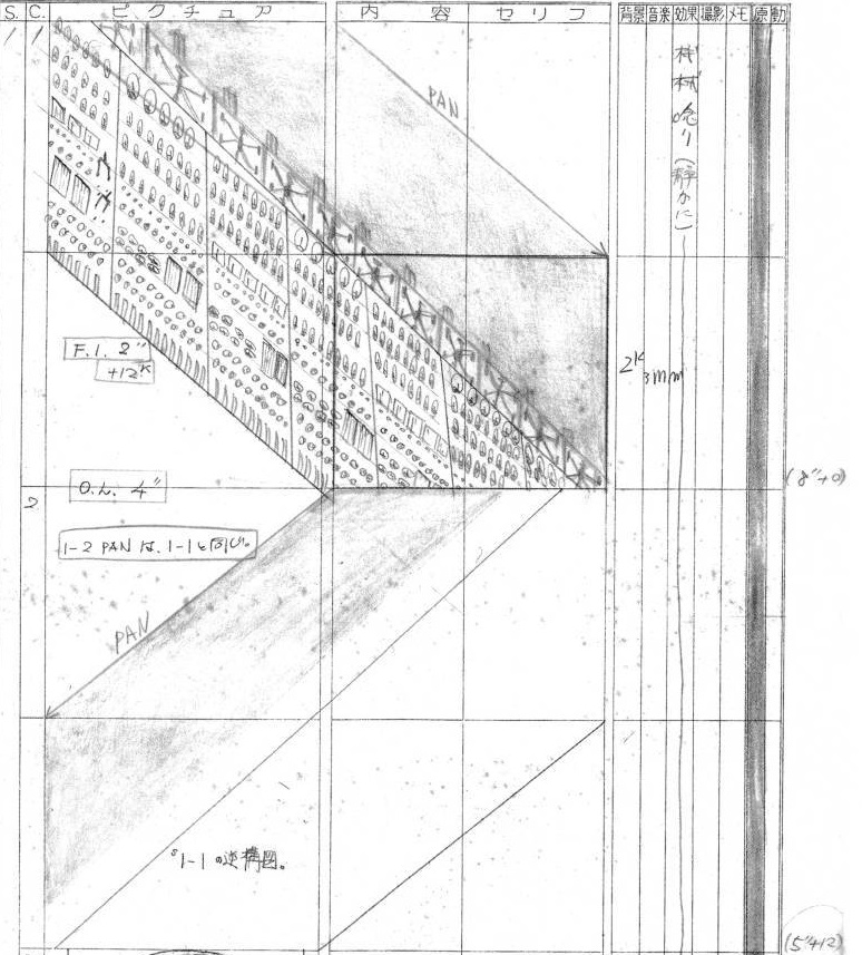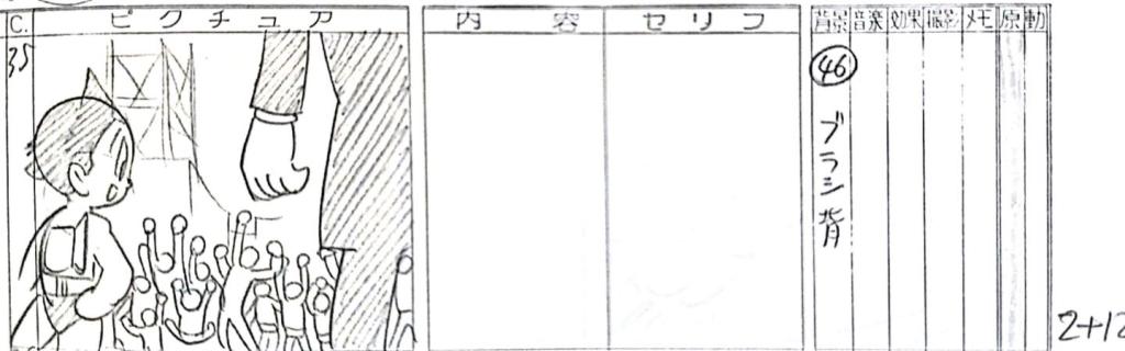 I have no particular conclusion to offer to this piece, because it was largely experimental and mostly descriptive. This may not be true in all cases, but in this one, I don’t think studying the storyboards made me approach the “creative intent” of the directors who wrote them. It has rather made clear how essentially technical a storyboarder’s work is. Whatever they communicate, storyboards are, first and foremost, instruments of communication. What I hope this short study has shown, then, is the various modes through which such communication can happen, according to various levels of technicity. I also hope such a close study of storyboards can establish one thing, which is that, in terms of basic storyboarding techniques, there has been no major evolution since Atom – the technical terminology, different approaches to write (or draw) a storyboard and the various back-and-forths between storyboard and final episodes were already in place.